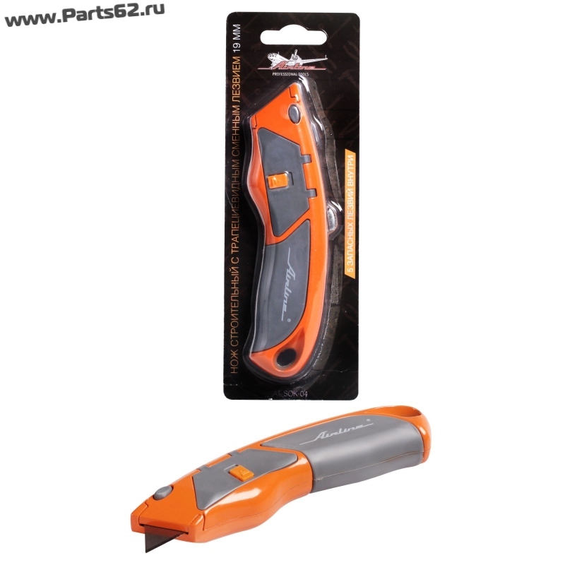 Нож строительный с трапециевидным сменным лезвием 19мм (AT-SOK-04)