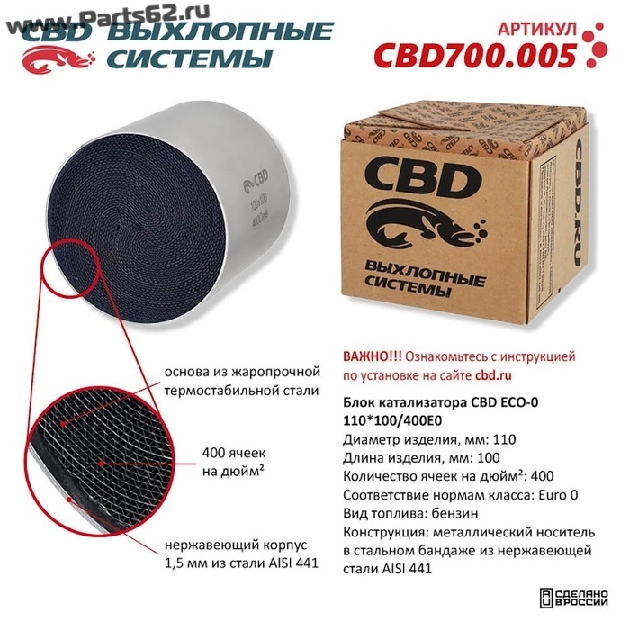 | Конструкция | Керамический носитель в стальном бандаже из нержавеющей стали AISI 409 |