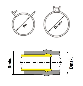 На основе значения D min. определить номинальный диаметр (D n) требуемого хомута. D n = D min.