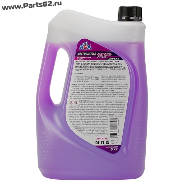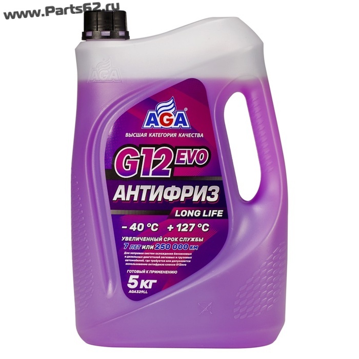 | Наименование | Антифриз AGA G12evo LONG LIFE, фиолетовый, –40 °С, 5 кг |