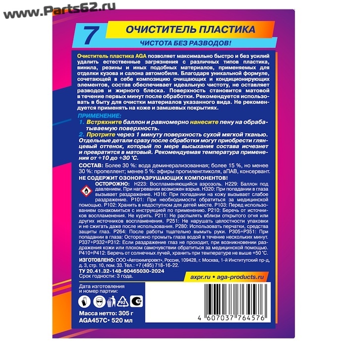 | Наименование | Очиститель пластика, 520 мл |