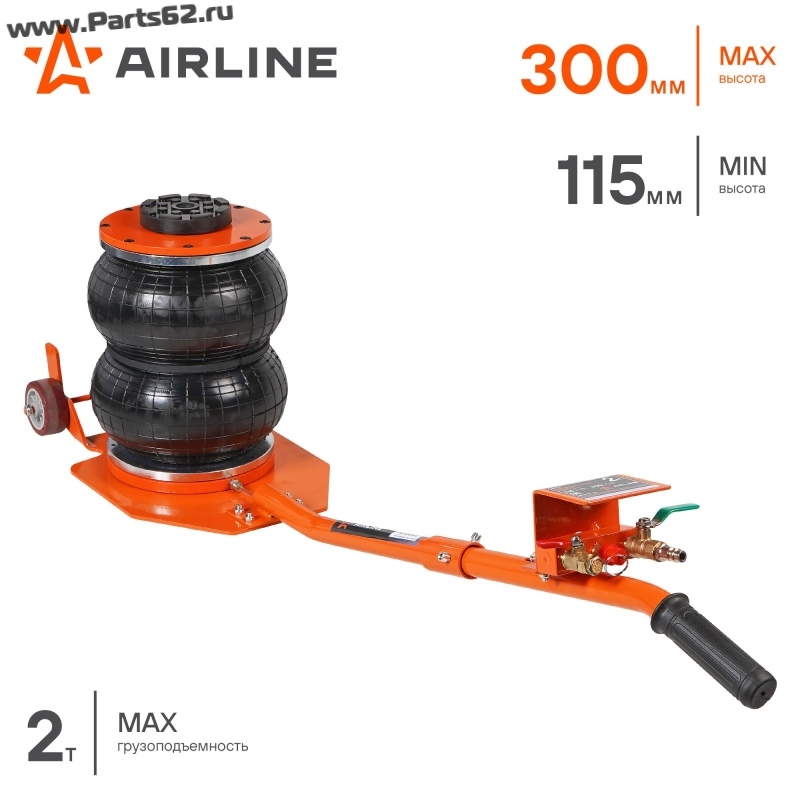 | Наименование | Домкрат пневматический 2т 115-300мм, подкатной, 2 секции, длин. ручка (ABJF02) |