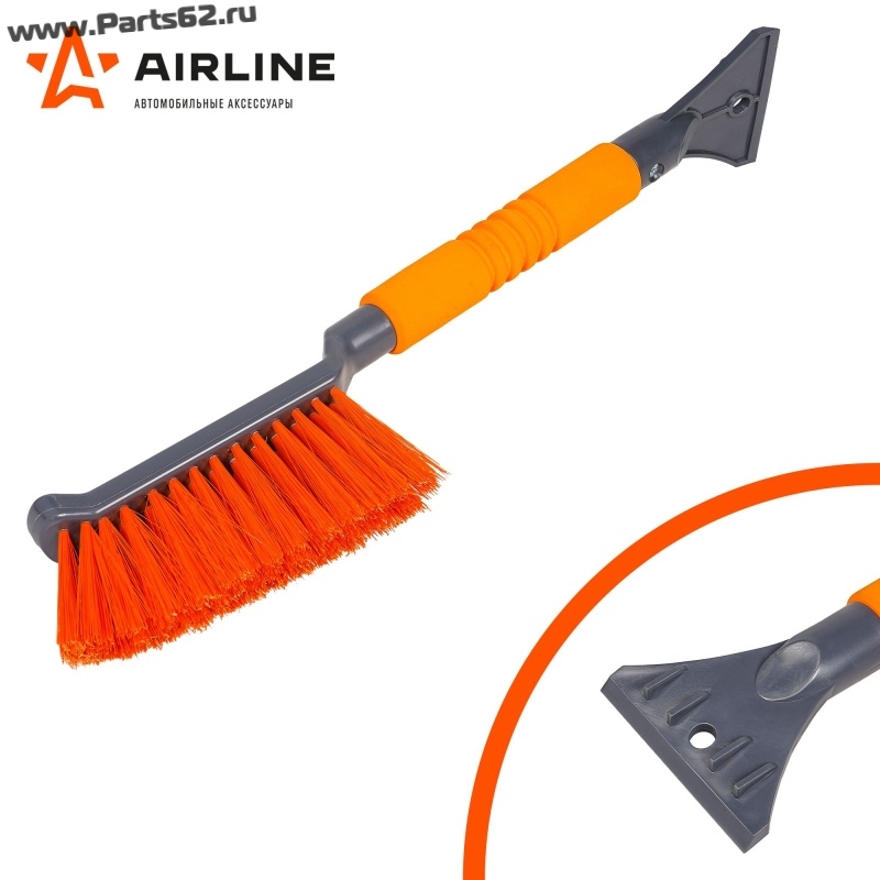 Особое строение щетки для удаления снега и льда с поверхности автомобиля делает ее более удобной при использовании и позволяет удалять снег быстро и без затрат большого количества усилий. Щетка оснащена трехрядной густой щетиной, а также перпендикулярно расположенным скребком. Для дополнительного удобства при работе во время низких температурных условий рукоятка щетки имеет поролоновую вставку с эргономичной поверхностью.