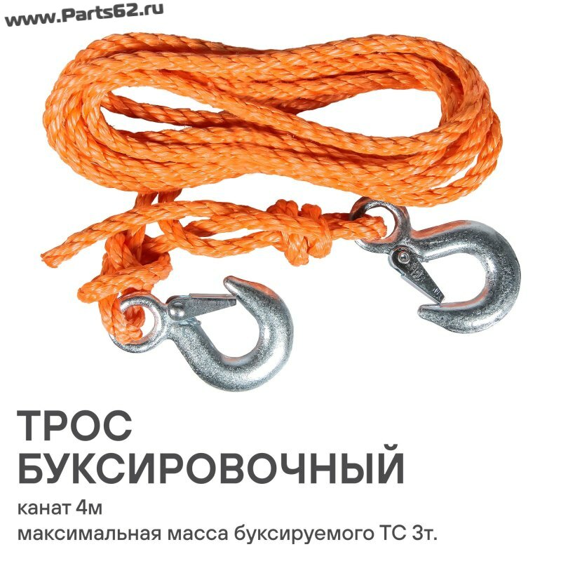 | Наименование | Трос буксировочный канат 3 т, 4 м, 2 крюка |