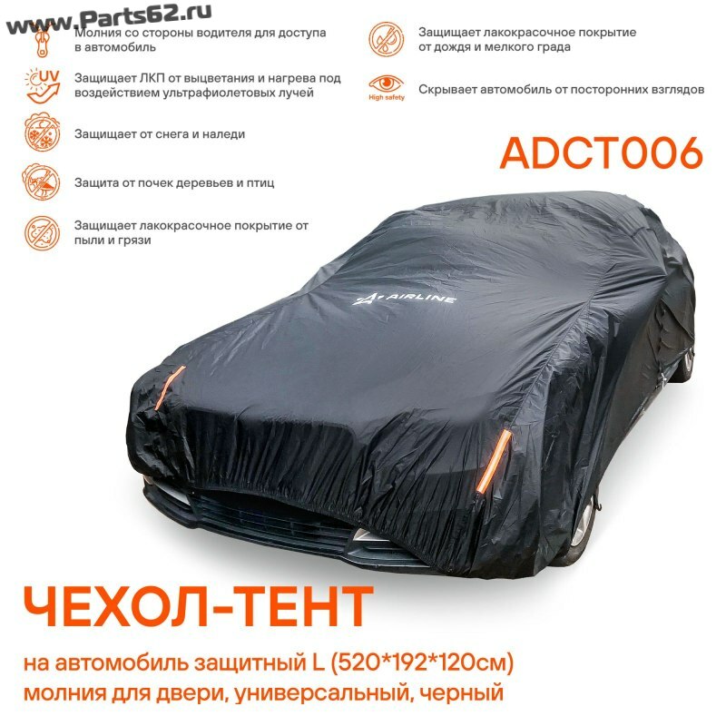 | Наименование | Чехол-тент на автомобиль защитный L (520х192х120 см) молния для двери, черный |