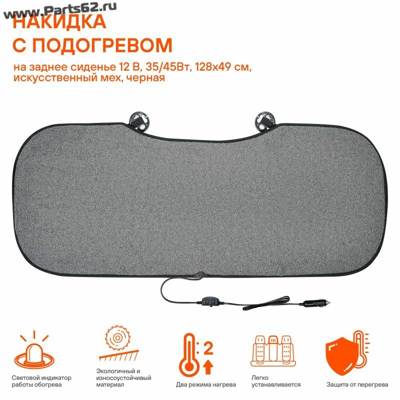 | Наименование | Накидка с подогревом на заднее сиденье 12 В, 35/45 Вт, 128х49 см, искусств. мех, серая |