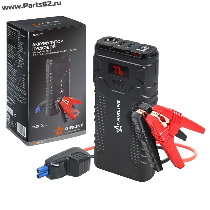 | Наименование | Аккумулятор пусковой (Booster) 16000 мАч, 1000А, 14.8V, умные провода, пуск ДВС, кейс |