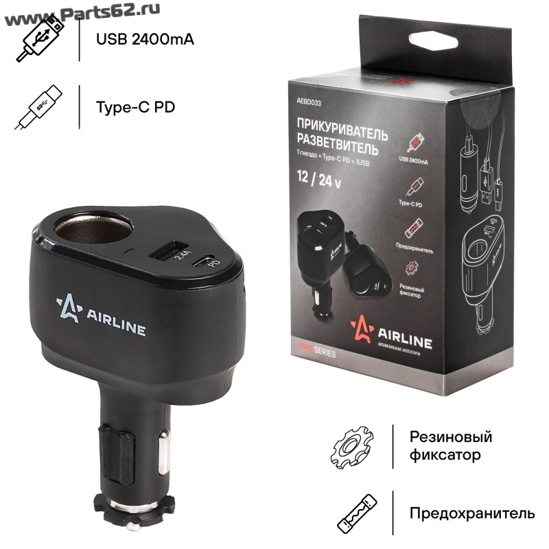 | Наименование | Разветвитель прикуривателя 1 гнездо + Type-C PD + 1USB 2.4A 30Вт PRO |