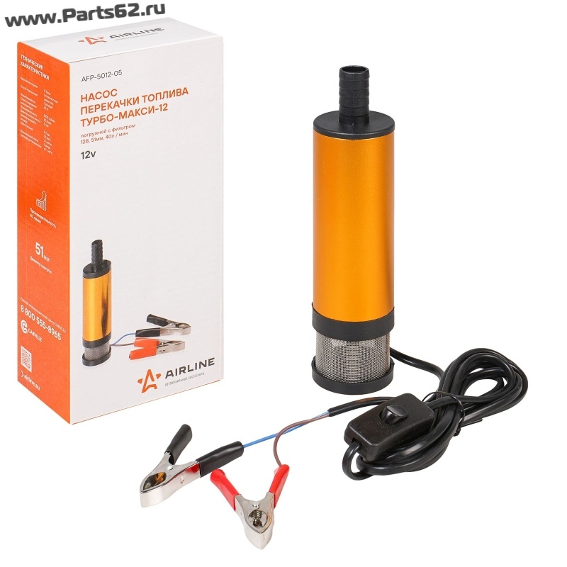 | Наименование | Насос перекачки топлива ТУРБО-МАКСИ-12 погружной с фильтром 12В 51мм 40л/мин |