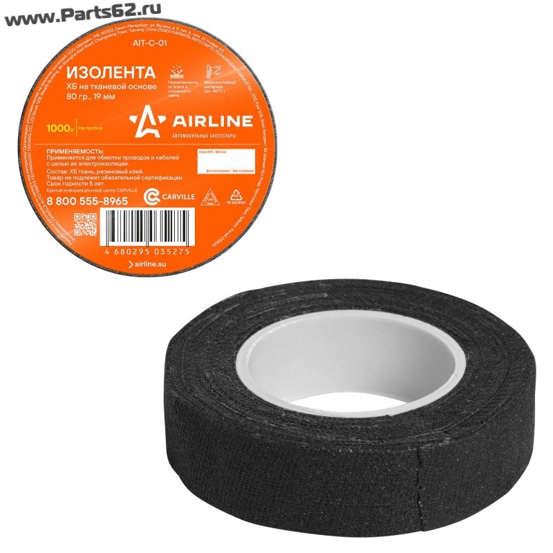 Изолента ХБ на тканевой основе, которая является расходным материалом и предназначена для обмотки проводов и кабелей с целью их электроизоляции. Изолента AIRLINE представляет собой прорезиненную хлопчатобумажную ленту, имеющую одну клеящую поверхность. Её диэлектрические и изоляционные свойства ограничены значением до 1000 Вольт. Касательно практического использования: у данного вида изоляционной ленты, существует такое достоинство, как использование ее в очень жарких и горячих местах. При сильном нагреве она не плавиться, а коксуется, тем самым защищая от прямого замыкания оголённые участки проводов с другими токопроводящими частями.