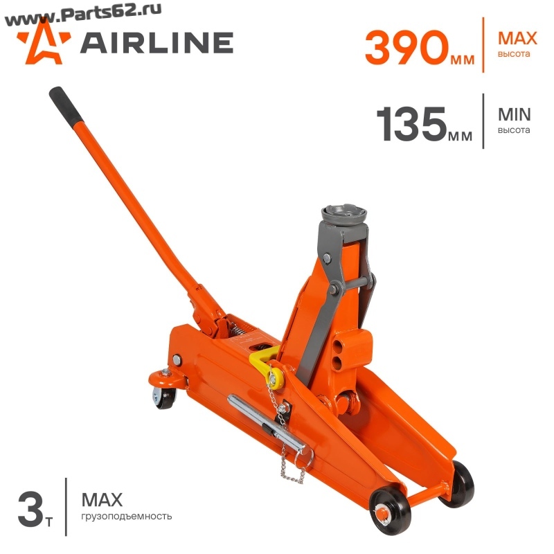 | Наименование | Домкрат подкатной 3т в сумке (MIN - 135 мм, MAX - 390 мм) |