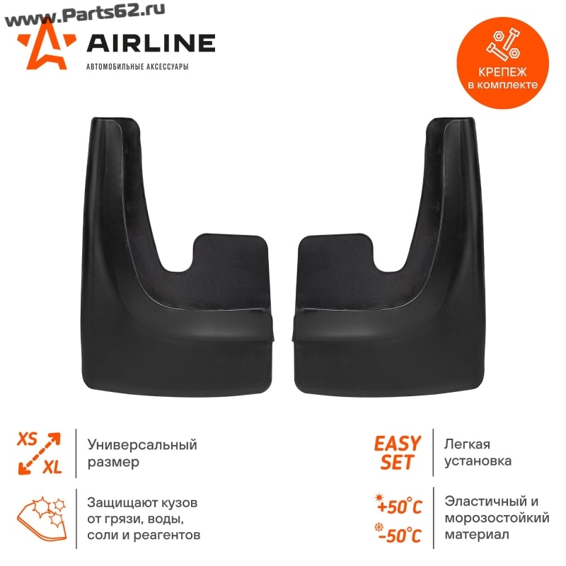 | Наименование | Брызговики универсальные для легковых автомобилей, черные, 2шт, с крепежом |