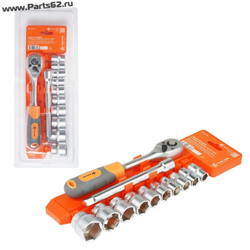 | Наименование | Набор головок с трещоткой 3/8" DR 72Т 12пр. (10,11,12,13,14,15,17,19,22,24мм, удлинитель 150мм) |