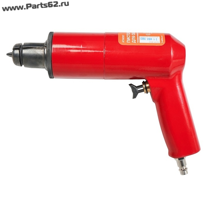 Пистолет предназначен для ошиповки зимних шин ремонтными шипами. Работает от обычного компрессора. Эффективное рабочее давление от 8 до 10 атм. Шипы подаются непосредственно в головную часть пистолета по одной штуке.