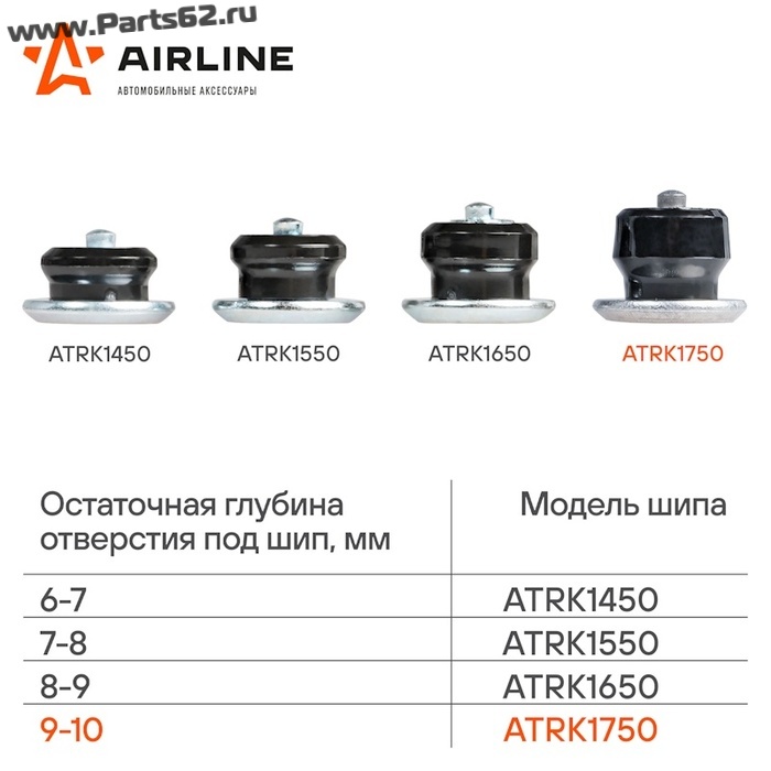 Ремонтные шипы предназначены для восстановления шипованных зимних шин, ставятся в отверстия, где в процессе эксплуатации были утрачены шипы. В зависимости от глубины этого отверстия подбирается высота ремонтного шипа. Шипы используются для глубины отверстия 9-10 мм. Специальная форма шипа, увеличенный диаметр фланца (12 мм), материал втулки - обеспечивают его надежное удержание в протекторе зимней шины.