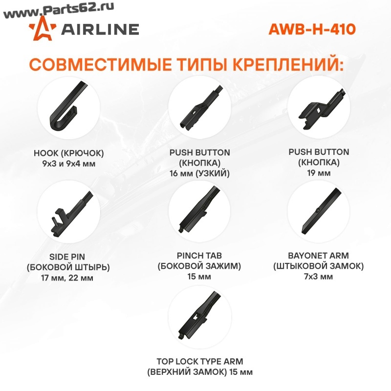 | Наименование | Щетка стеклоочистителя гибрид 410мм (16") 3 адаптера |