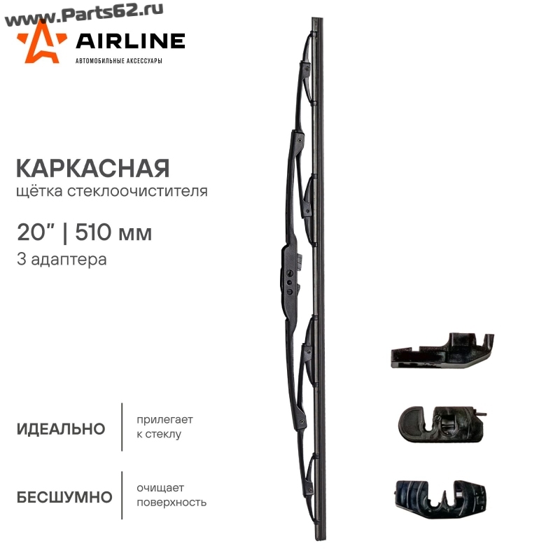 | Наименование | Щетка стеклоочистителя каркас 510мм (20") 3 адаптера |