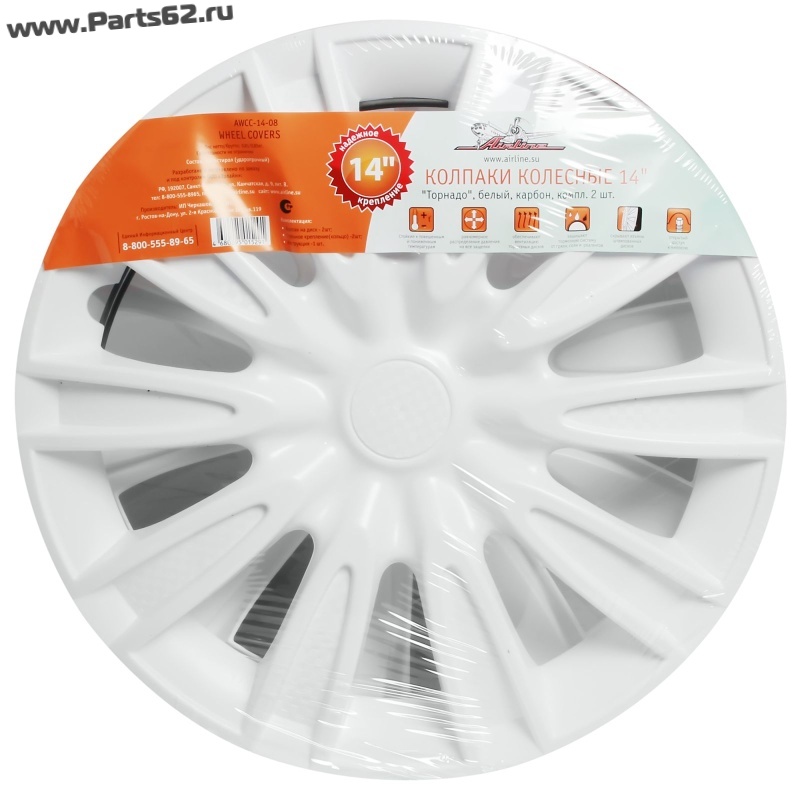 | Наименование | Колпаки колесные 14" "Торнадо", белый, карбон, компл. 2 шт. |
