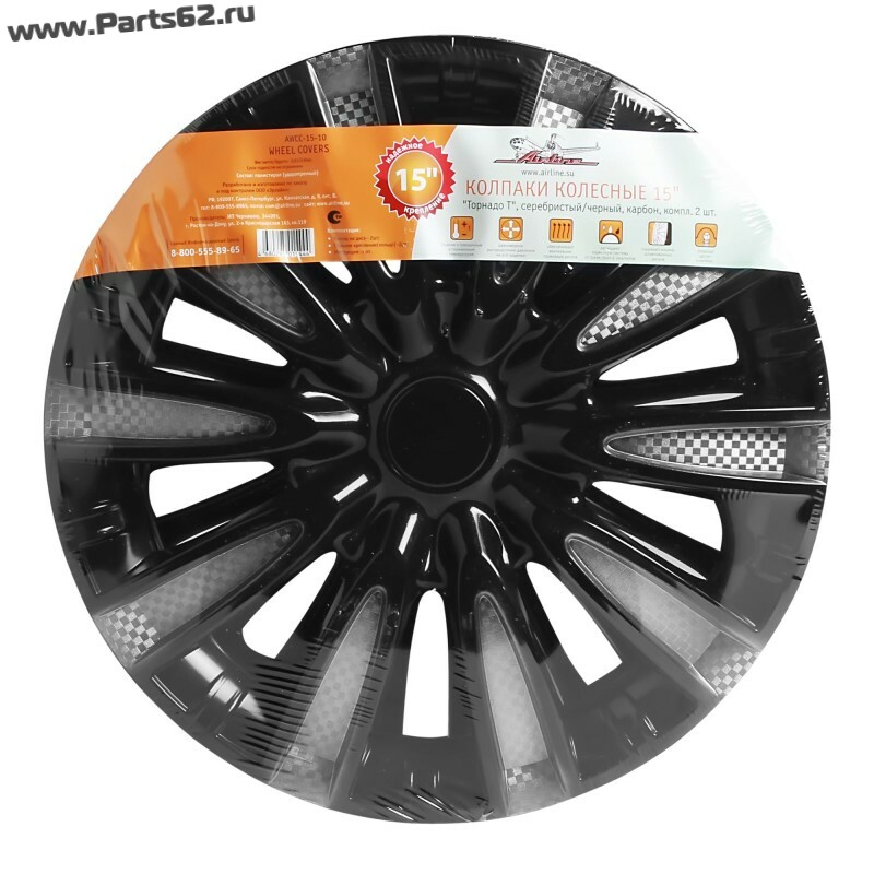 | Наименование | Колпаки колесные 15" "Торнадо Т", серебристый/черный, карбон, компл. 2 шт. |