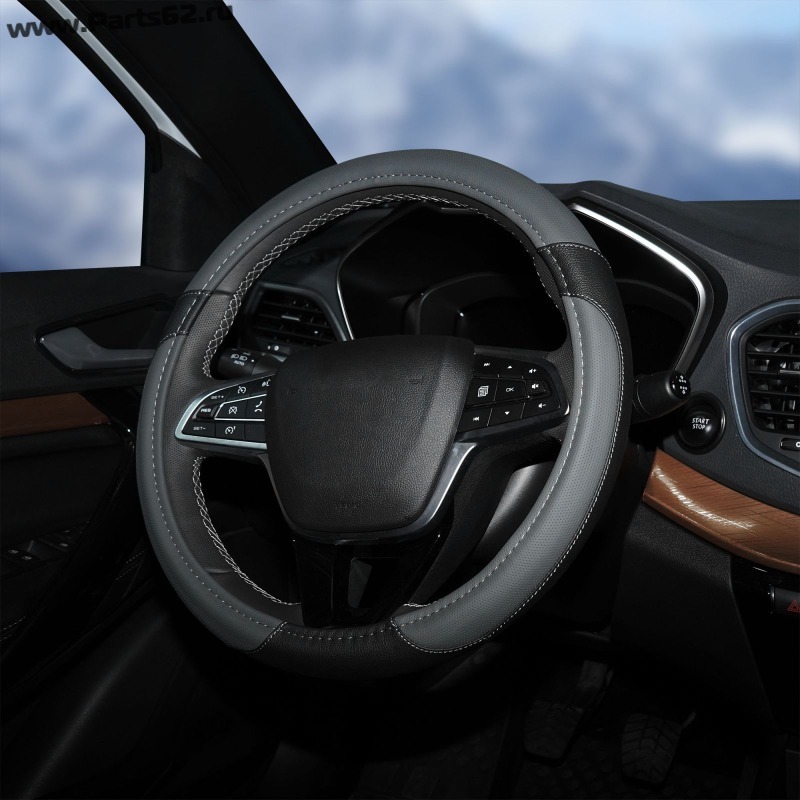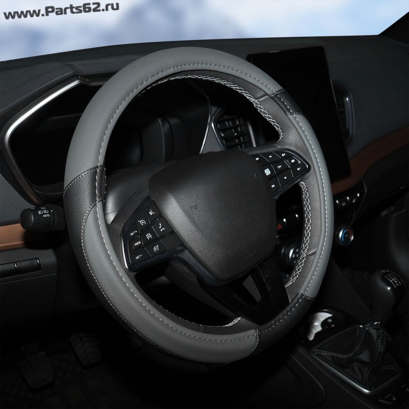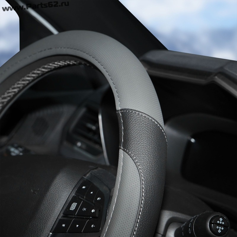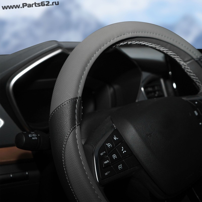 | Наименование | Оплетка на руль, искусственная кожа с перфорацией, серая/черная, 40 см / L |