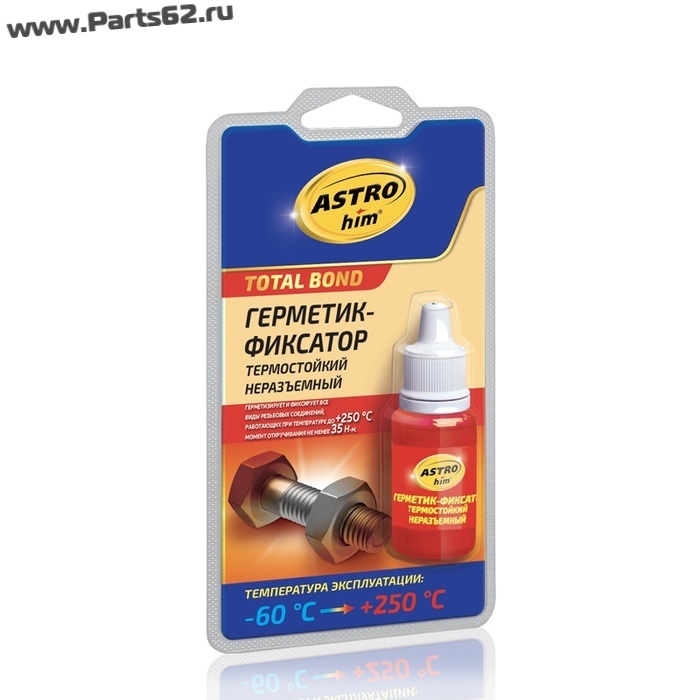 Герметик-фиксатор ASTROhim (термостойкий) предназначен для герметизации и фиксации резьбовых соединений (в том числе и трубных), работающих при температурах до +250 ºС и требующих разборки только в случае капитального ремонта. Также может использоваться для фиксации и герметизации соединений вида вал-втулка, фиксации подшипников без прессовой посадки.