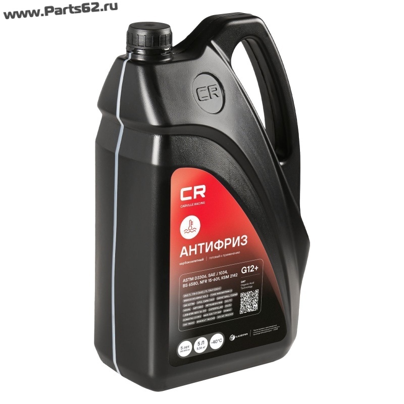 Жидкость охлаждающая низкозамерзающая Антифриз Carville Racing карбоксилатный флуоресцентный -40 °C изготовлена из высококачественного моноэтиленгликоля с применением многофункционального пакета антикоррозионных, антикавитационных, антипенных и смазывающих присадок по карбоксилатной технологии OAT (Organic Acid Technology). По классификации VAG относится к антифризам класса G12+ (TL 774-F). Предназначена для использования во всех типах бензиновых и дизельных двигателей легковых и грузовых автомобилей, эксплуатируемых в нормальных и тяжелых условиях, при температуре окружающей среды до минус 40 °C. Обеспечивает эффективное охлаждение двигателя, создает дополнительную защиту от кавитации гильз и крыльчатки насоса, обеспечивает максимальную защиту от коррозии всех узлов системы, защищает от высокотемпературной коррозии алюминиевые элементы, увеличивает ресурс работы помпы радиатора, насоса, резиновых уплотнителей. Не допускает замерзания, перегрева, закипания и появления воздушных пробок.