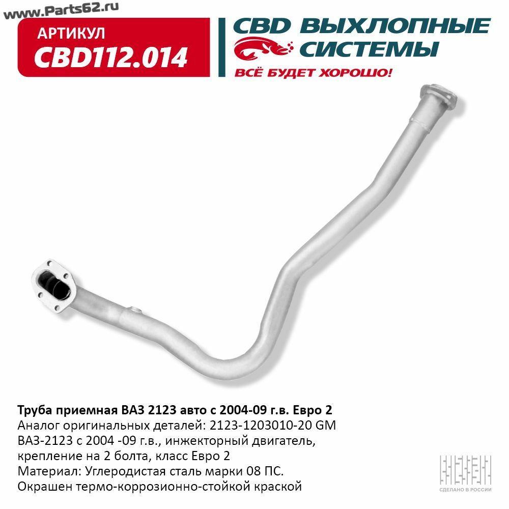 | Наименование | Труба приемная ВАЗ 2123 2004-09 под датч. кр.под 2 болта Евро 2. CBD112.014 |