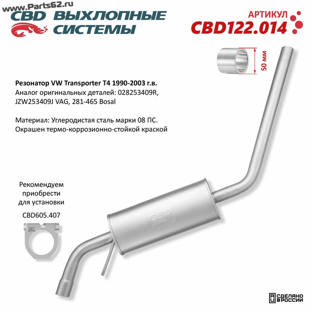 | Наименование | Резонатор VW Transporter T4 1990-2003 CBD122.014 |