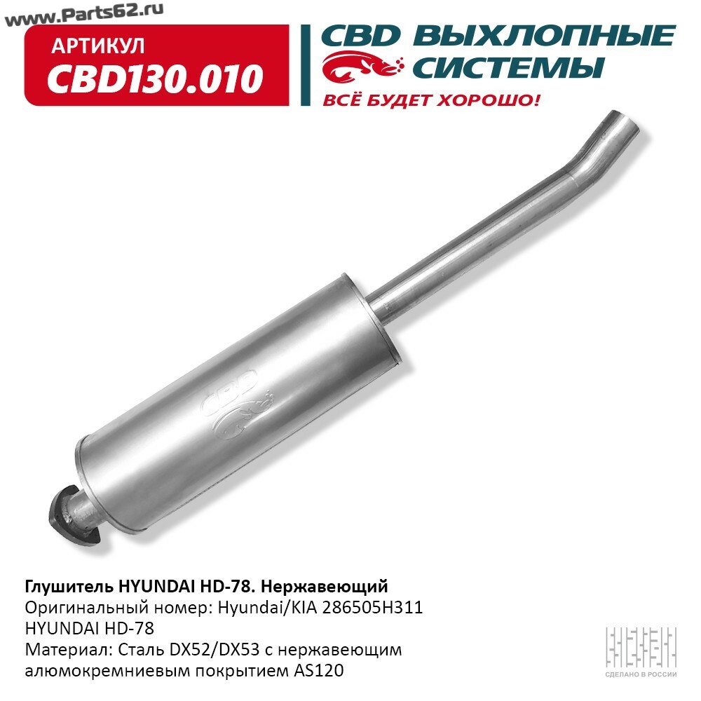 | Наименование | Глушитель HYUNDAI HD-78 286505H311 Нерж сталь. CBD130.010 |