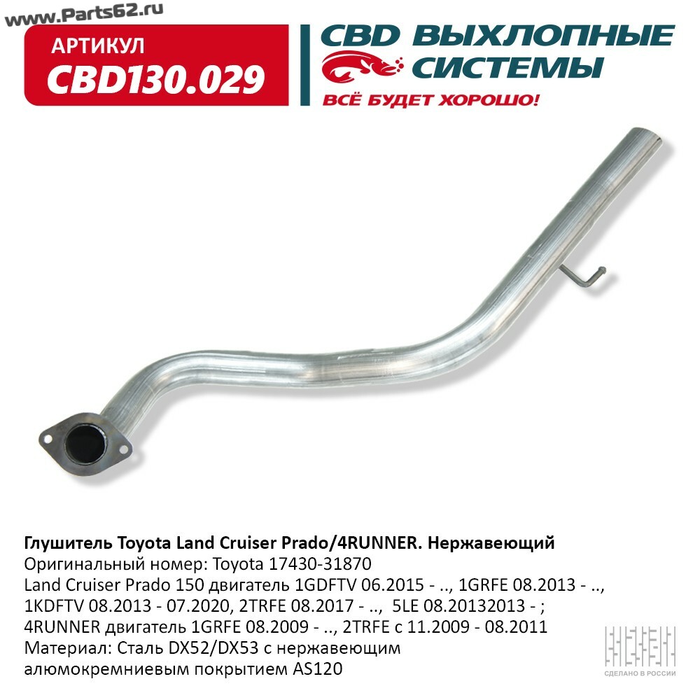 | Наименование | Глушитель Toyota 17430-31870 Prado/4RUNNER. Нержавеющий. CBD130.029 |