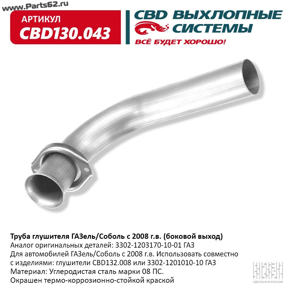 | Для автомобилей ГАЗель/Соболь с 2008 г.в. Использовать совместно с изделиями | глушители CBD132.008 или 3302-1201010-10 ГАЗ |