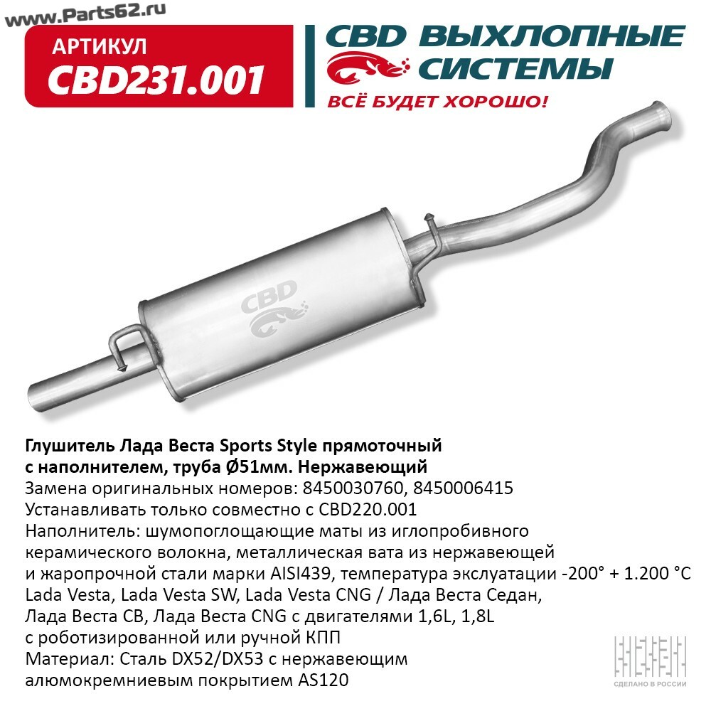 | Наименование | Глушитель Лада Веста Sports Style прямоточный с наполнителем. Нерж сталь. CBD231.001 |