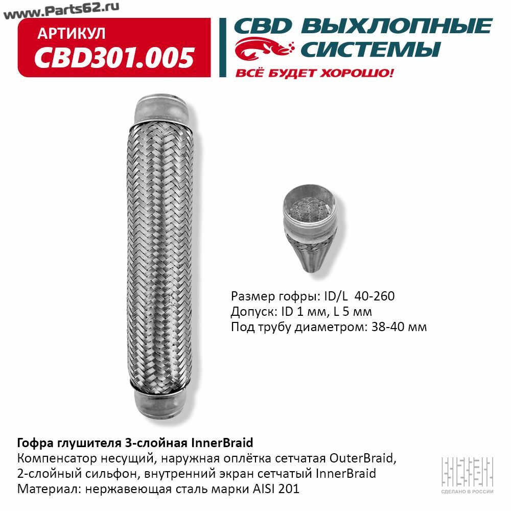 | Наименование | Гофра глушителя 3-сл Innerbraid 40-260. CBD301.005 |