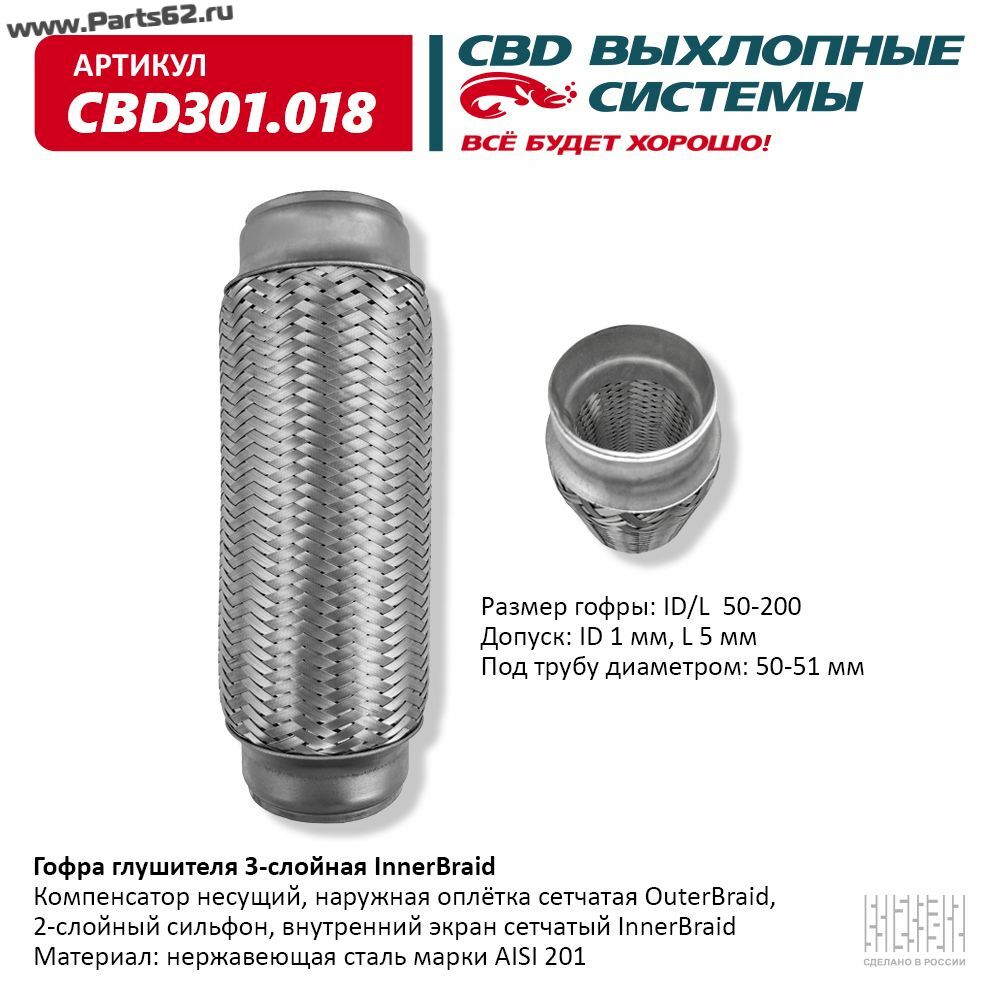 | Наименование | Гофра глушителя 3-сл Innerbraid 50-200. CBD301.018 |