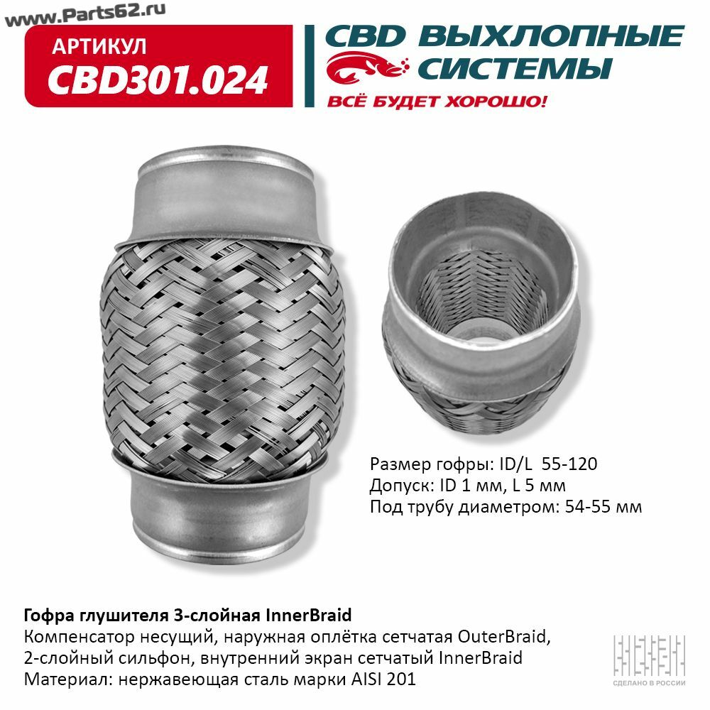| Наименование | Гофра глушителя 3-сл Innerbraid 55-120. CBD301.024 |