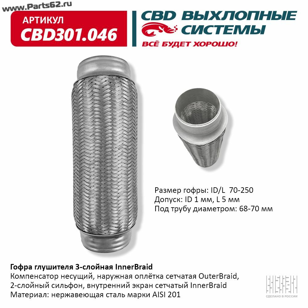 | Наименование | Гофра глушителя 3-сл Innerbraid 70-250. CBD301.046 |