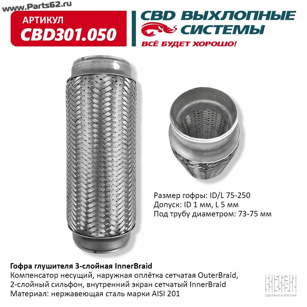 | Наименование | Гофра глушителя 3-сл Innerbraid 75-250. CBD301.050 |