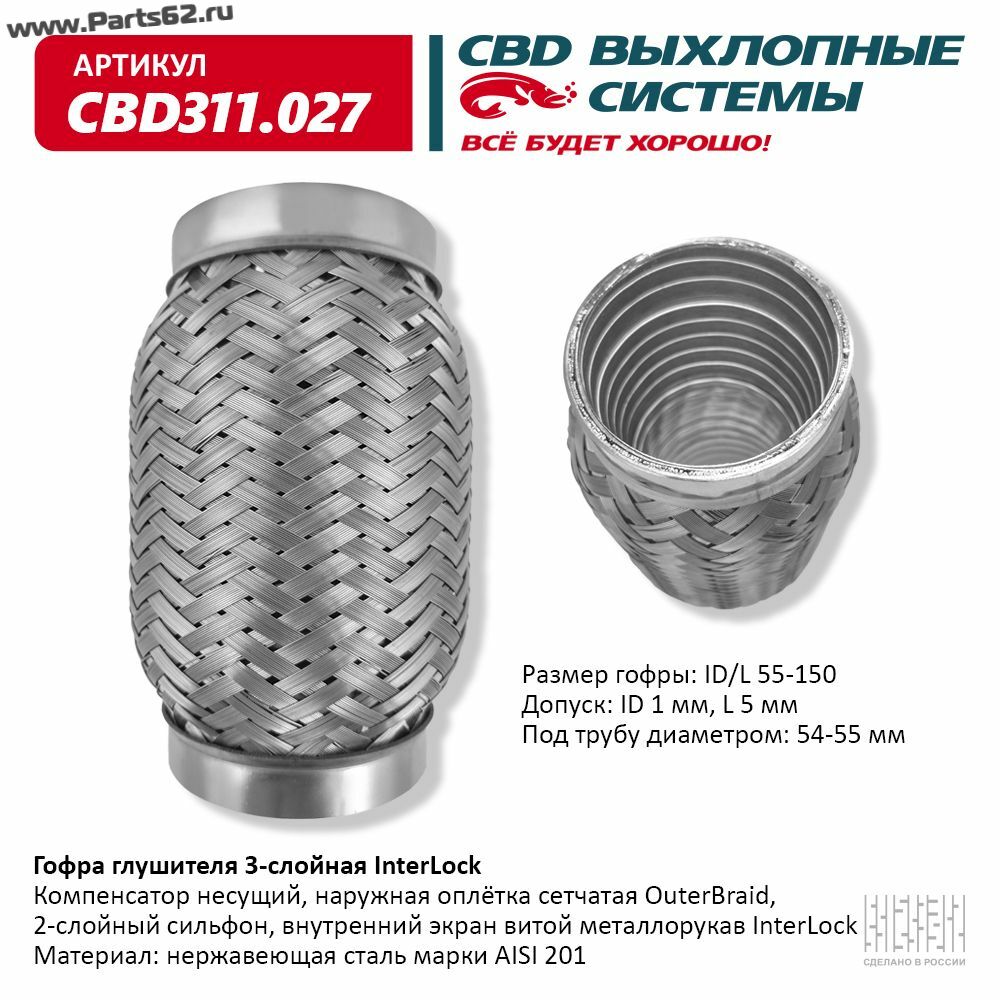 | Наименование | Гофра глушителя 3х-сл InterLock 55-150. CBD311.027 |
