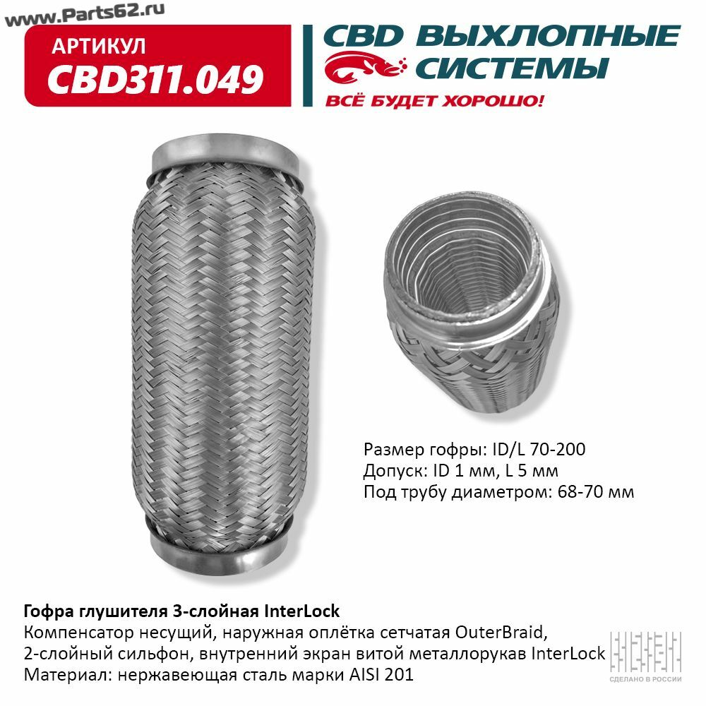 Наименование | Гофра глушителя 3х-сл InterLock 70-200. CBD311.049 |