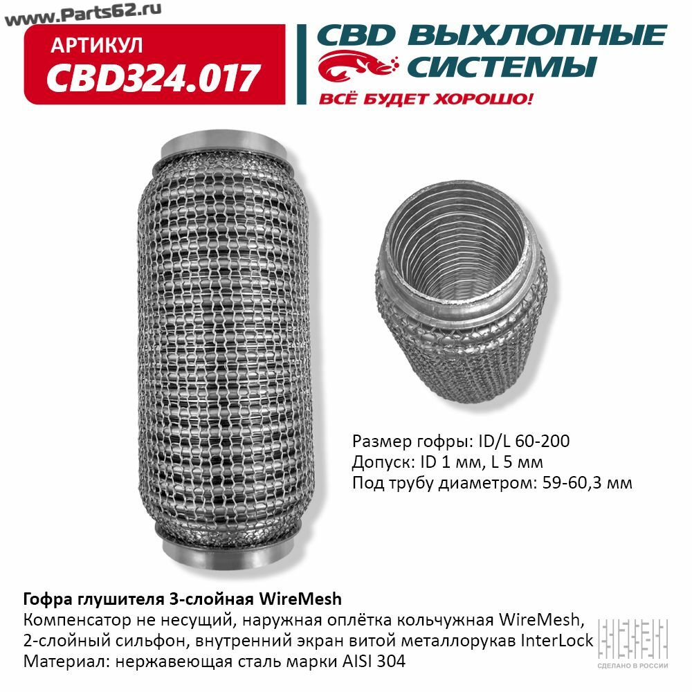 | Наименование | Гофра глушителя 3х-сл WIRE MESH 60-200. CBD324.017 |
