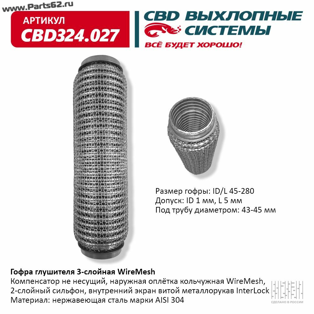 | Наименование | Гофра глушителя 3х-сл WIRE MESH 45-280. CBD324.027 |