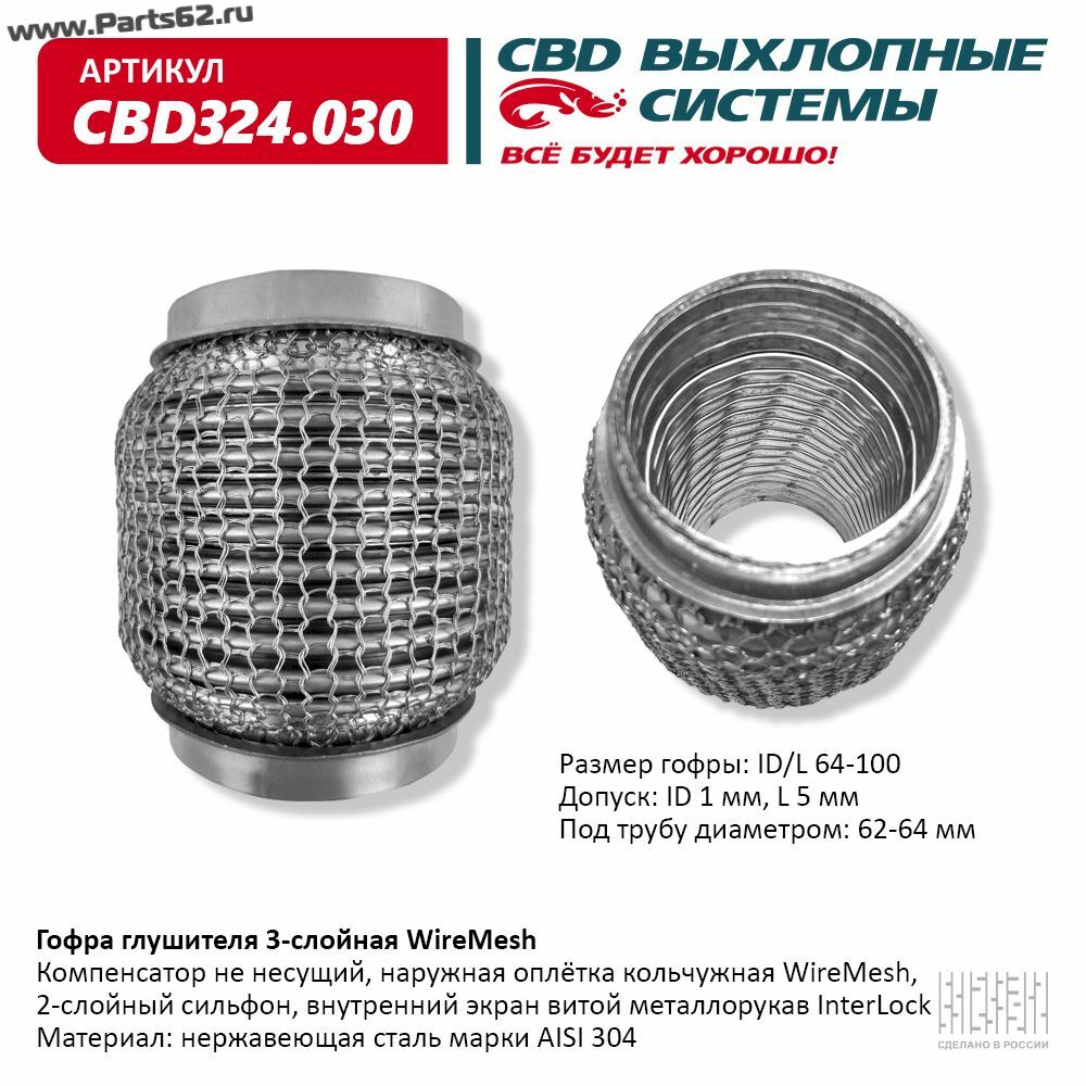 | Наименование | Гофра глушителя 3х-сл WIRE MESH 64-100. CBD324.030 |