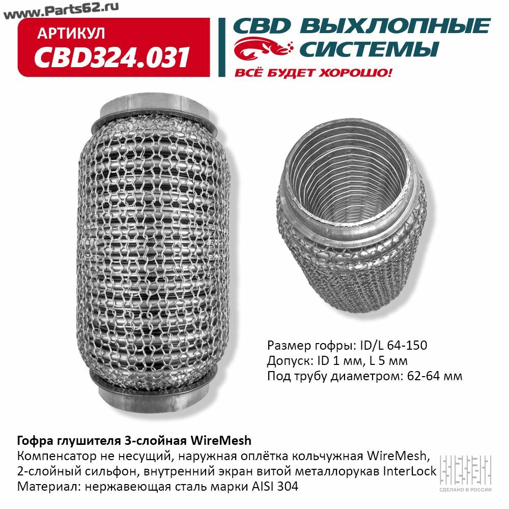 | Наименование | Гофра глушителя 3х-сл WIRE MESH 64-150. CBD324.031 |