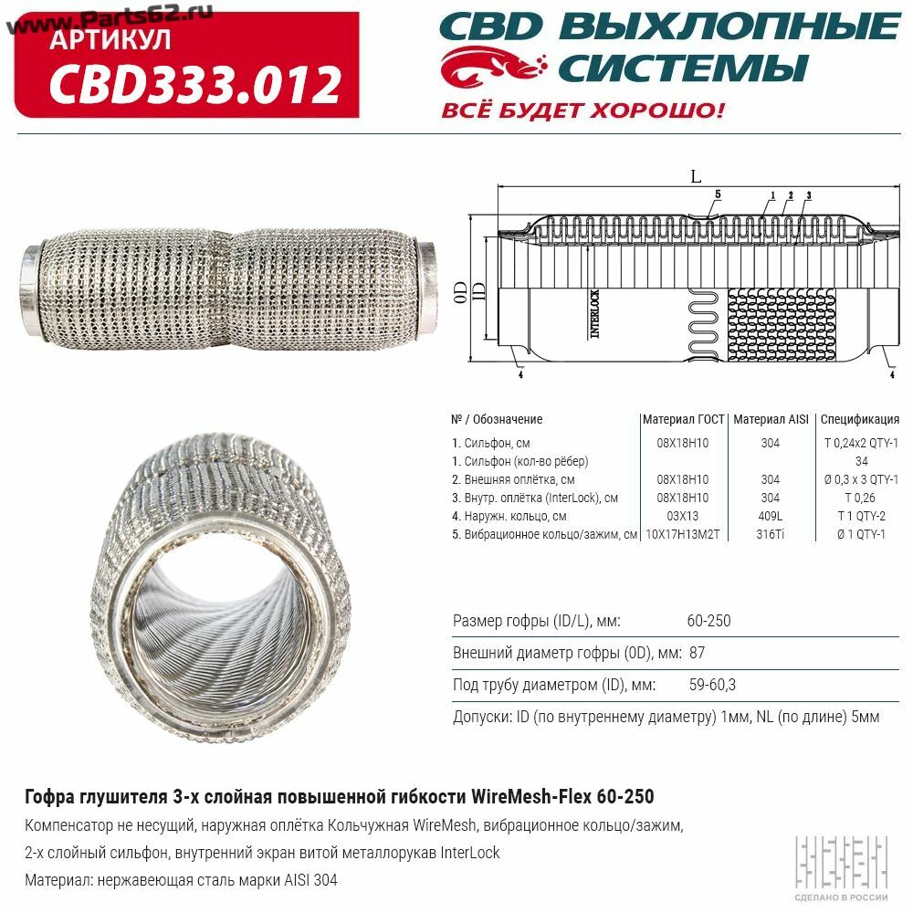 | Наименование | Гофра глушителя повышенной гибкости WireMesh-Flex 60-250. CBD333.012 |