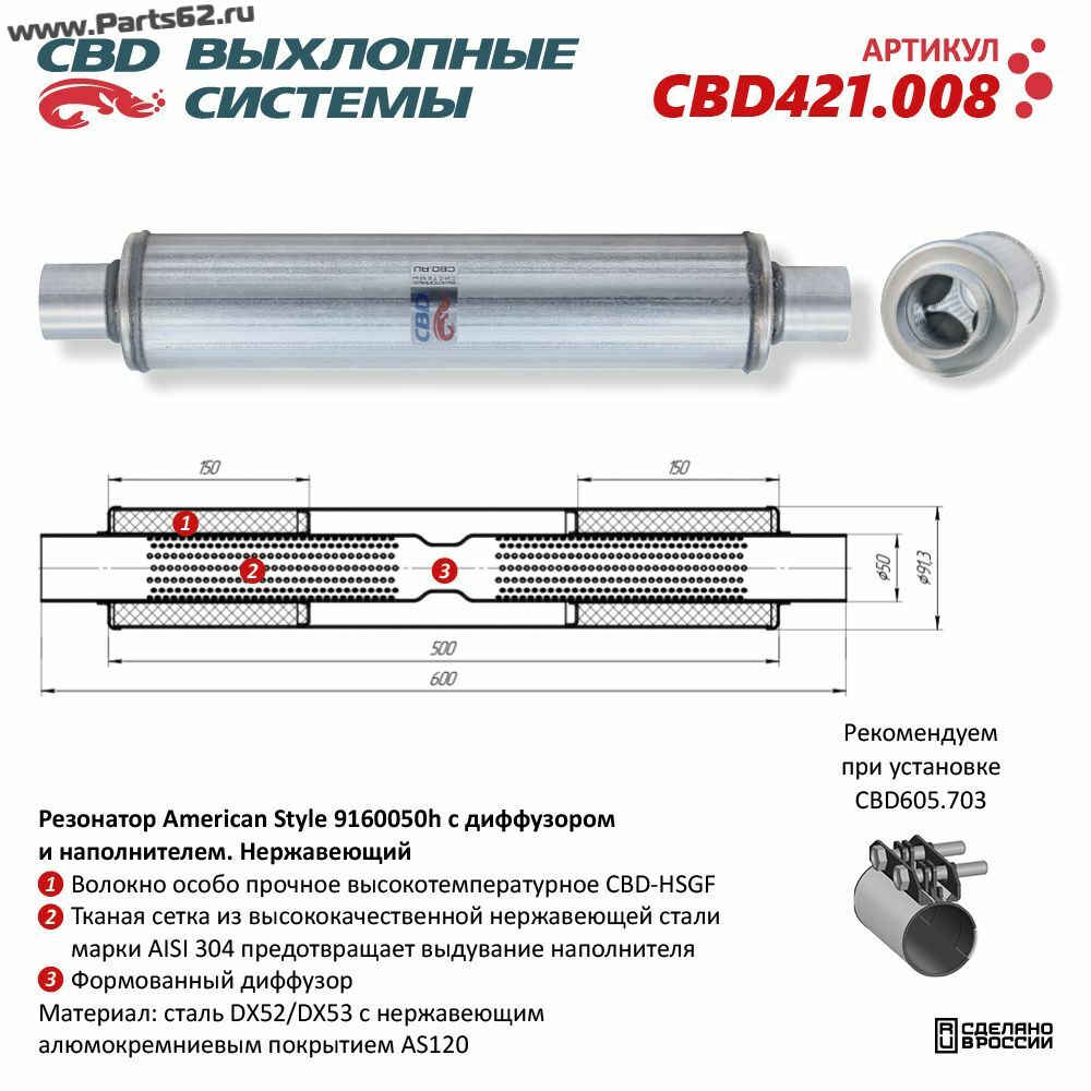 | Наименование | Резонатор American Style 9160050h с диффузором и наполнителем. Нержавеющий. CBD421.008 |