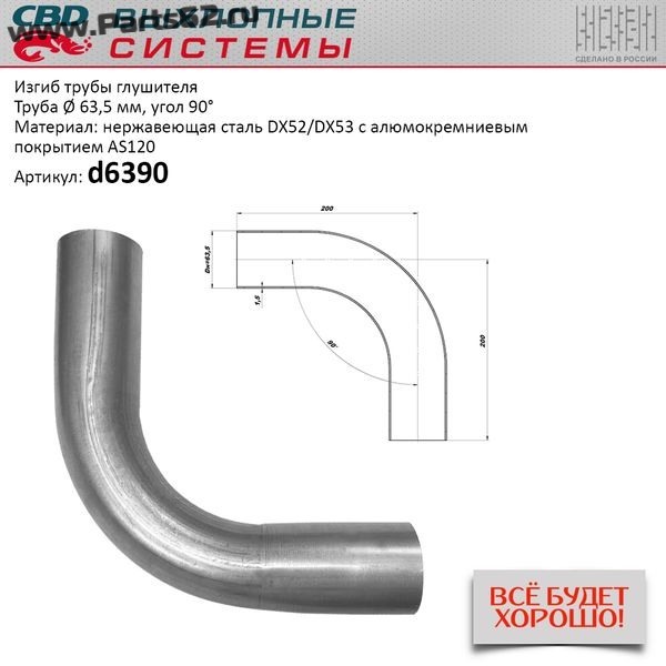 | Наименование | Изгиб трубы глушителя (труба Ø 63.5мм, угол 90°, L400) |