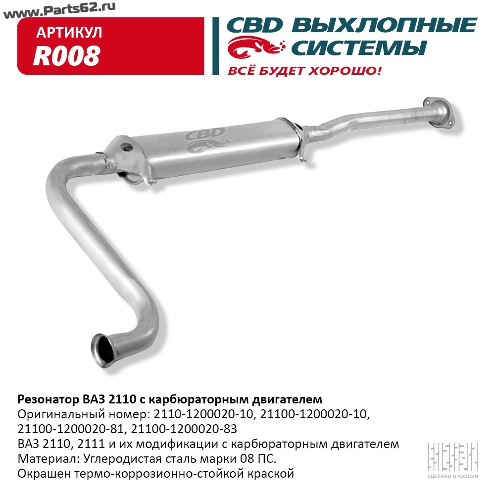 | Наименование | Резонатор ВАЗ 2110- 2111, 2112 карб. дв. CBD. R008 |