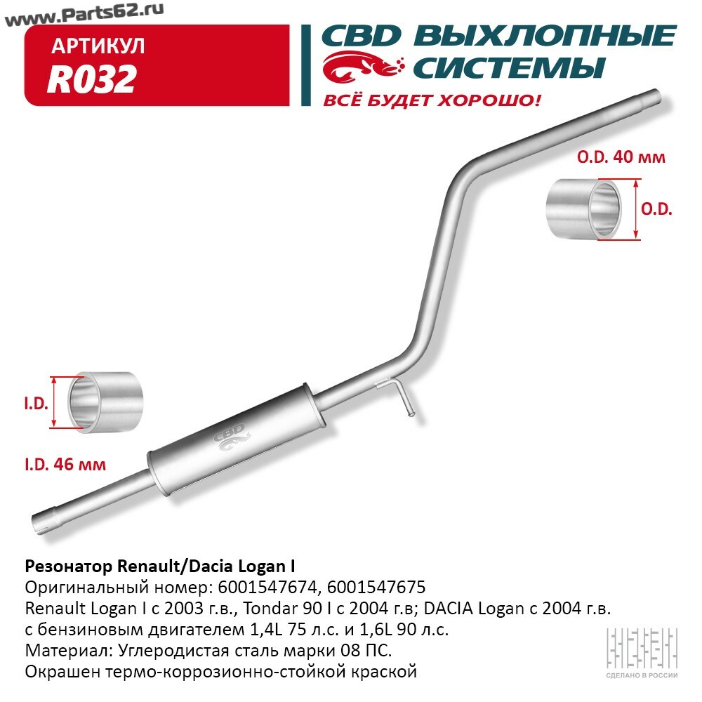 Наименование | Резонатор Renault/DACIA Logan 6001547674/75. CBD. R032 |