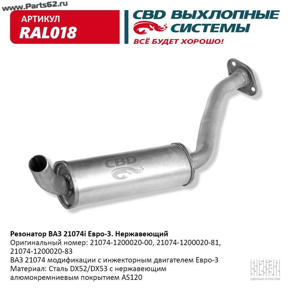 | Наименование | Резонатор ВАЗ 21074i Евро 3, закат Нерж сталь. CBD. RAL018 |