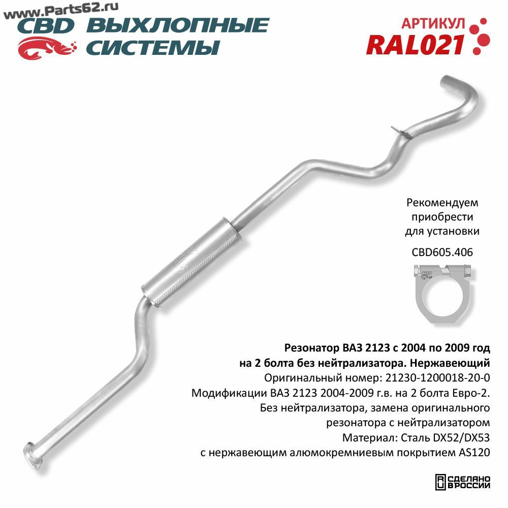 Наименование | Резонатор ВАЗ 2123 с 04-09 г без нейтрал Нерж сталь. CBD. RAL021 |